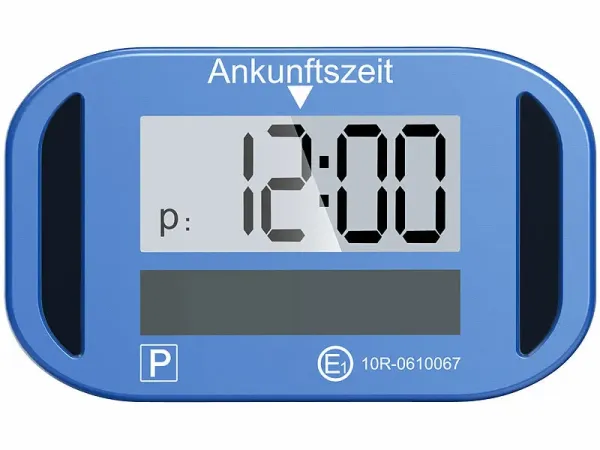 - Kompakte, digitale e-Parkscheibe mit ECE-Zulassung und 2 Displays