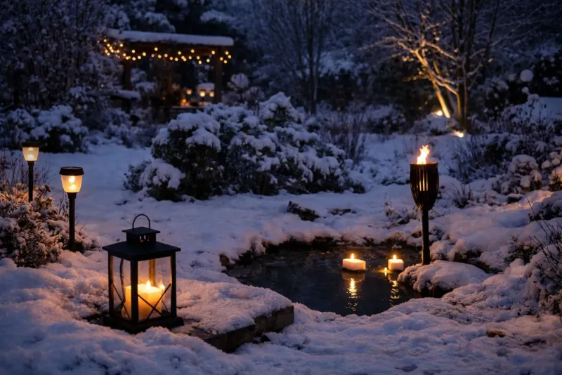 Schwimmkerzen in wassergefüllten Schalen schaffen poetische Lichtinseln, die auch bei leichtem Frost funktionieren. Das Zusammenspiel von Kerzenschein und Eisformationen erzeugt märchenhafte Stimmungen. Für dauerhafte Installationen eignen sich spezielle Gartenfackeln, die stundenlang brennen und dabei beeindruckende Flammenbilder erzeugen.