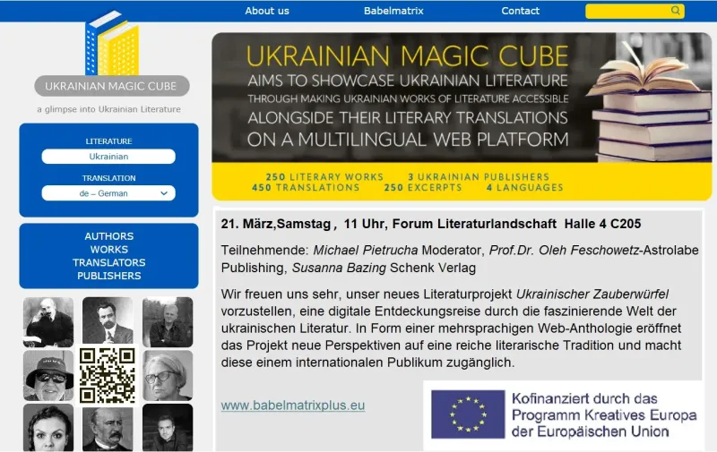 Wir freuen uns sehr, unser neues Literaturprojekt "Ukrainischer Zauberwürfel" vorzustellen, eine digitale Entdeckungsreise durch die faszinierende Welt der ukrainischen Literatur. In Form einer mehrsprachigen Web-Anthologie eröffnet das Projekt neue Perspektiven auf eine reiche literarische Tradition und macht diese einem internationalen Publikum zugänglich.
