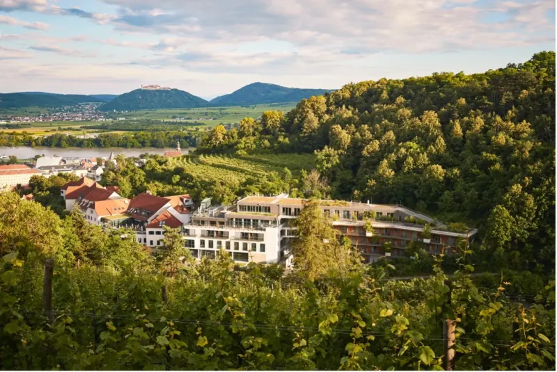 Das Steigenberger Hotel & Spa Krems liegt inmitten der Weingärten im UNESCO-Weltkulturerbe Wachau. Das Hotel verbindet exklusive Räumlichkeiten, 173 moderne Zimmer und Suiten, Spa & Wellness sowie Kulinarik und Wein auf höchstem Niveau. Für Erholungssuchende und Aktivurlauber gleichermaßen. Ein besonderes Wohlfühl-Erlebnis erwartet die Gäste im 3.000qm großen Wellnessbereich. Mit Panoramablick, verschiedenen Saunen, Soledampfbad, Innen- und Außenpool, Panorama-Gym sowie komfortablen Liege- und Relaxräumen am offenen Kamin. Abgerundet wird das moderne Wellbeing-Konzept durch das Cardea Wachau Gesundbleib-Zentrum als innovatives Longevity-Ambulatorium im Hotel. Für Geschäftsreisende stehen sieben moderne Tagungsräume mit insgesamt 650qm Fläche sowie Breakout-Rooms und verschiedene Outdoor-Flächen inklusive eigenem Weingarten zur Verfügung.
